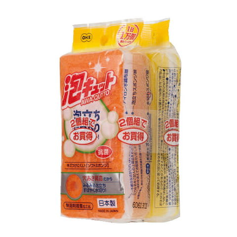 食器用スポンジ 泡キュット ソフトスポンジ オレンジ×イエロー 2個入 | キッチンスポンジ すぽんじ お得
