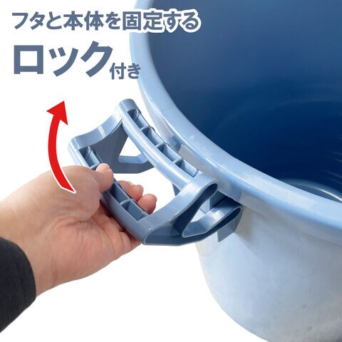 本体容器についている止具で蓋をしっかり固定します。止具は四角いグリップ形状なので、そのまま持ち手としても使用できます。