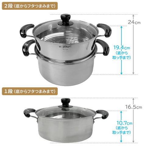 蒸し器としてだけではなく、下鍋を両手鍋としておでんやシチュー等の煮込み料理にもお使い頂けます。
