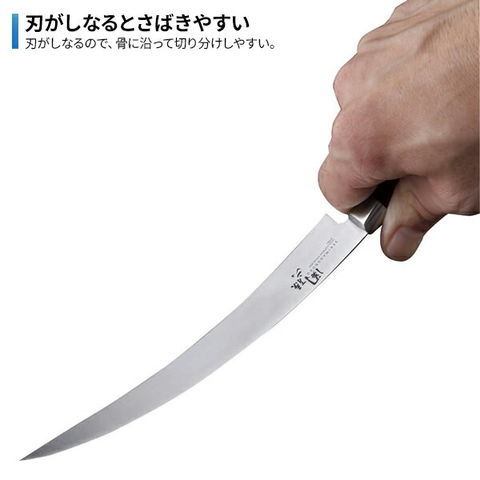 魚の三枚おろしや骨付き肉の下ごしらえに便利なステンレス製のフレキシブルナイフ。