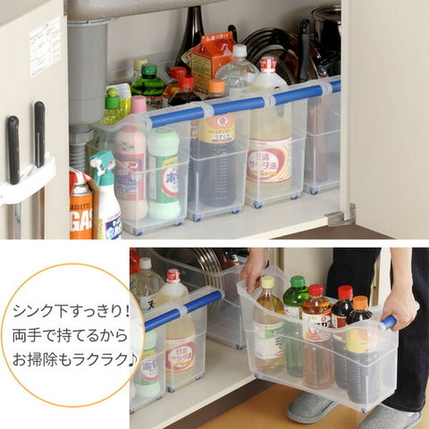 収納ケース シンク下ストッカー クリアー | シンク下 収納 ストッカー ボックス 整理収納 ハンドル付 引き出す キャスター付き シンク下リフォーム 取り出しラク