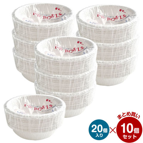 PW ペーパーボウル 280ml 20個入×10セット T-2820AL | 使い捨て 紙皿 耐水 耐油 電子レンジOK 汁物 ご飯 簡易食器 無地 白 行楽 レジャー アウトドア バザー