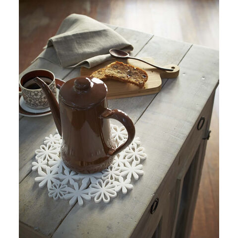 ティーポットやグラタン皿などの置き場所に。 耐熱性の良いシリコン素材が、熱い容器からテーブルを守ります。