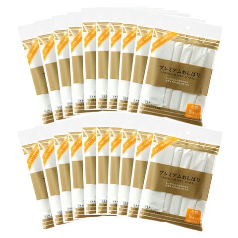 まとめ買い プレミアムおしぼり 100本セット(5本入×20個) | 日本製 大判 厚手 使い捨ておしぼり 個包装 業務用 店舗 町内行事 大きい 抗菌 行楽 会食 慶事
