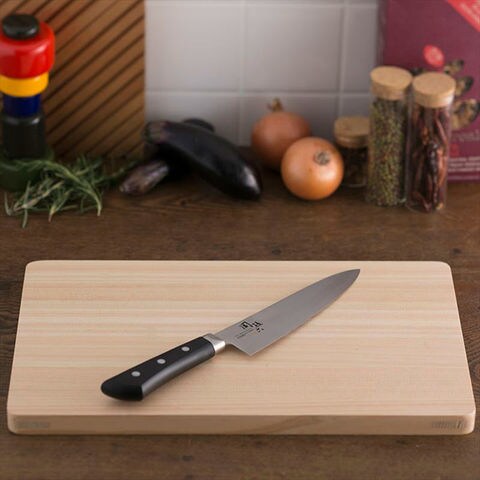 牛刀は、鋭利な刃先で肉の筋を切ったり、引き切りで肉をスライスするのに便利な包丁です。