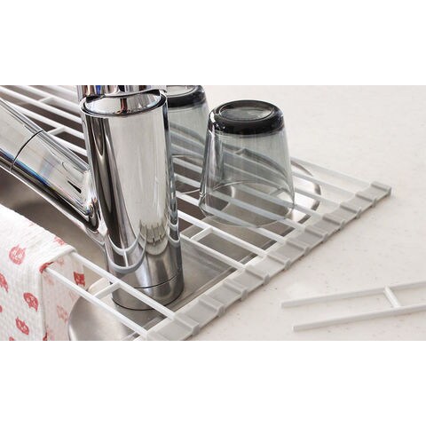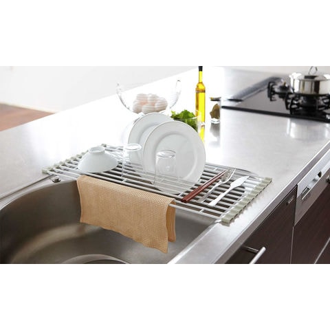 使わないときはくるっと巻いて収納できる折りたたみ水切りラック。