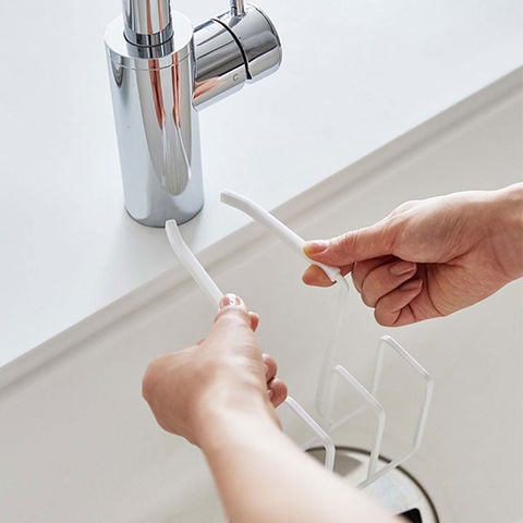 蛇口を挟んで取り付けできるスタイリッシュなスポンジホルダー。