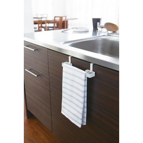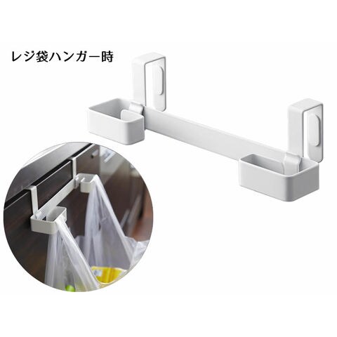 山崎実業 タオル掛け プレート レジ袋&タオルハンガー ホワイト 7918 | レジ袋フック 扉 引っ掛ける 台所 キッチン