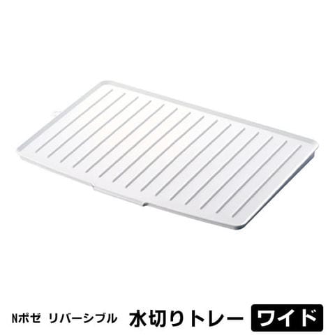 水切りマット Nポゼ 水切りトレー リバーシブル ワイド ホワイト | 水切りトレイ 食器置き ちょい置き POSE シンク 水切りかご トレイ 水が流れる 排水 止水 裏表 キッチン 抗菌 水切りラック
