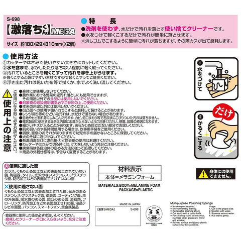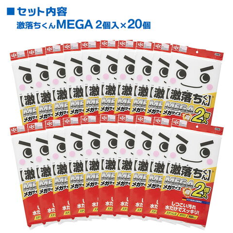 メラミンスポンジ 激落ちMEGA メガサイズ 2個入 ×20個(ケース販売) S-698 | まとめ買い 大きい 切れる お風呂 キッチン 洗面所 シンク 水だけ トイレ 箱買い 大容量 日本製