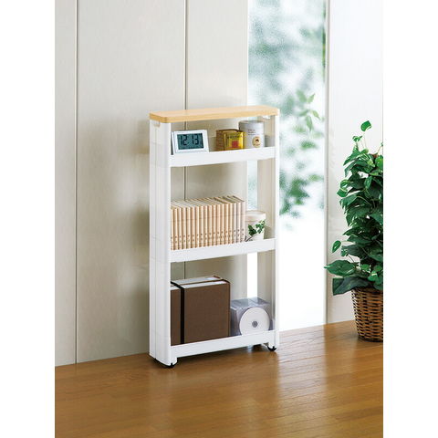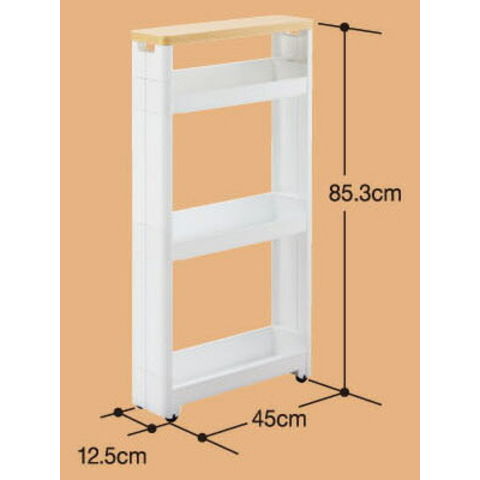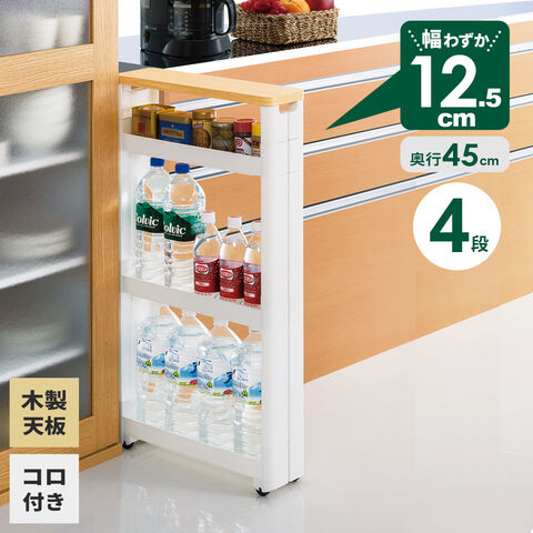 スリムワゴン スマートワゴンFit WT45 4段 幅12.5cm ホワイト F-2540 | 隙間ラック 収納ワゴン 移動 キャスター 調味料ラック 省スペース キッチン収納 天板 薄型 隙間収納棚 4段
