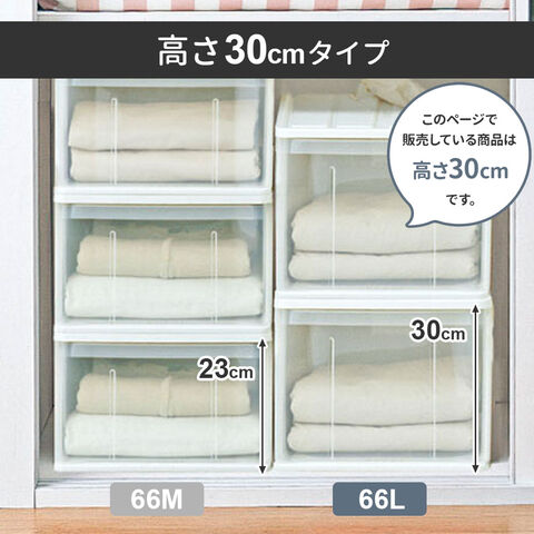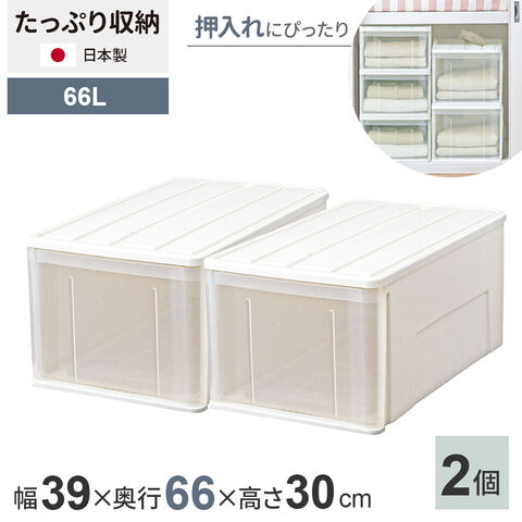 収納ケース たっぷり収納ケース 幅39×奥行66×高さ30cm ホワイト 2個セット 66L | 押し入れ 押入れ 押入れ収納 引き出し 収納ボックス 衣装ケース 積み重ね 衣類 服 入れ プラスチック プラケース 整理 収納 衣替え 日本製
