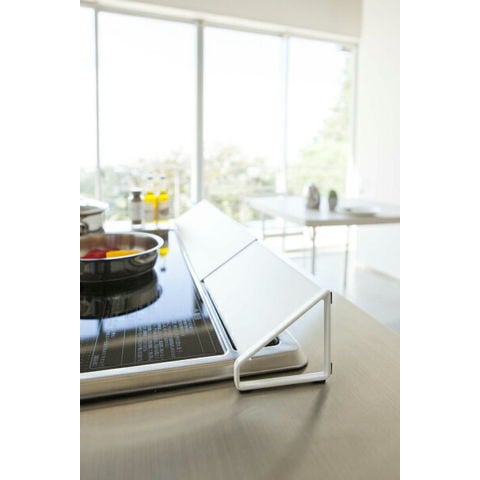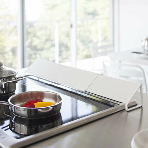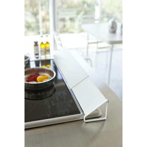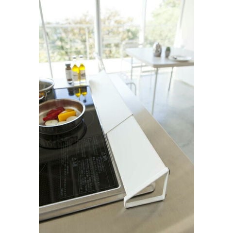 山崎実業 プレート 排気口カバー ホワイト 2405 | コンロ カバー ガスコンロ IH グリル 奥 排気 汚れ防止 油はね 伸縮 キッチン おしゃれ
