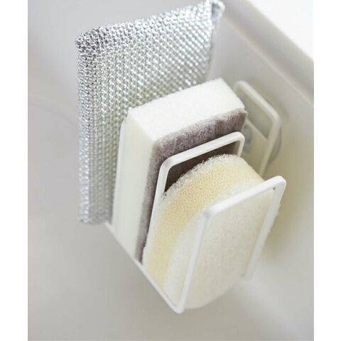 山崎実業 スポンジラック プレート 吸盤 スポンジホルダー 3連 ホワイト 2495 | スポンジ置き シンク