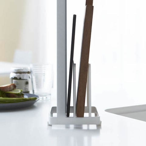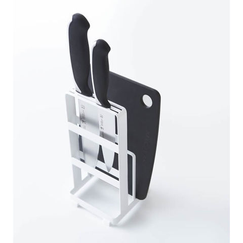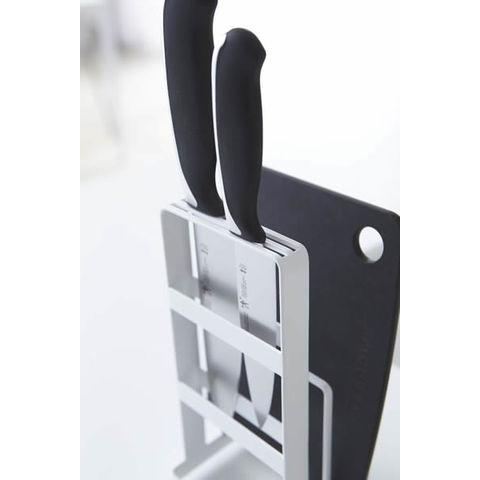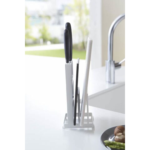 山崎実業 プレート 包丁&まな板スタンド ホワイト 2436 | 包丁差し まな板たて コンパクト シンプル 包丁たて 収納 おしゃれ