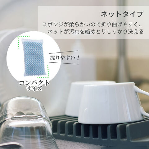 泡立ち・水切れスポンジ ネット ブルー・ピンク 2個入 | 食器洗い キッチン クリーナー 泡立ち 水切れ ネット 持ちやすい