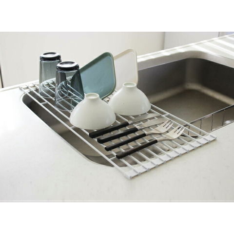 山崎実業 水切りラック tower タワー 折りたたみ 水切りラック L ホワイト 7835 | 折りたたみ シンク上 丸める コンパクト