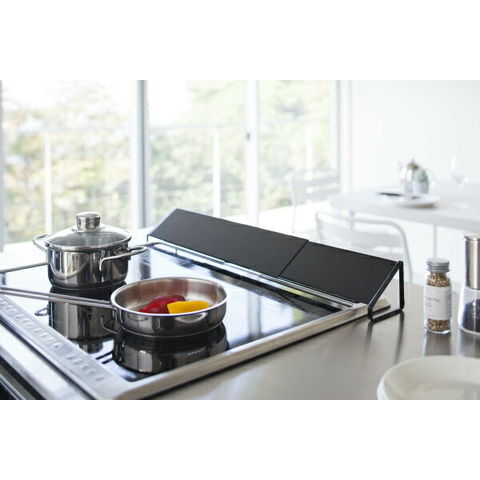 山崎実業 tower タワー 排気口カバー ブラック 2455 | コンロ カバー ガスコンロ IH グリル 奥 排気 汚れ防止 油はね 伸縮 キッチン おしゃれ