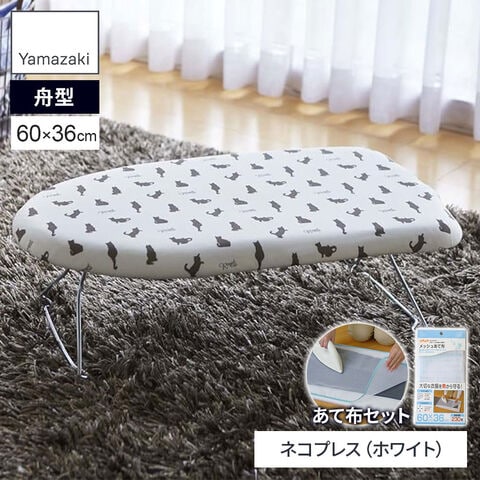 山崎実業 アイロン台 軽量スチールメッシュアイロン台 ネコプレス + メッシュあて布セット ホワイト 2640・4603 | 折りたたみ コンパクト アイロン 台 軽い 軽量 アイロン掛け 舟型 当て布 テカリ防止 スチーム シンプル おしゃれ