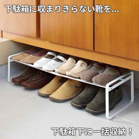 玄関の靴箱の下でも使えるコンパクト設計のシューズラック。