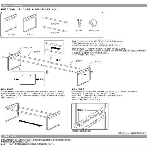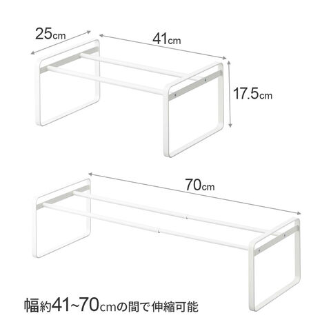 伸縮自在幅41~70cmで伸縮するので、置き場所にあわせて設置可能です。