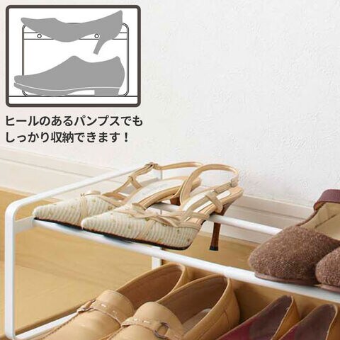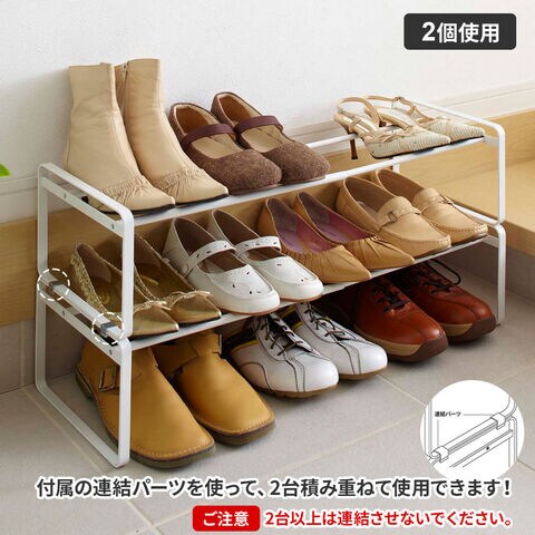 別売りの3段タイプのシューズラック(山崎実業 フレーム 伸縮シューズラック 3段 ホワイト/7555・ブラック/5556)の上に積み重ねてご使用いただくこともできます。