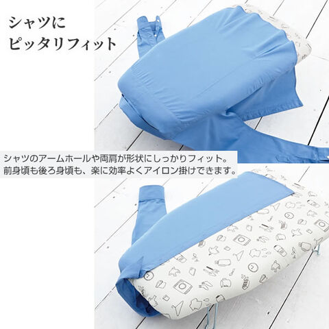 シャツのアームホールや両肩が形状にしっかりフィット。 前身頃も後ろ身頃も、楽に効率よくアイロン掛けできます。