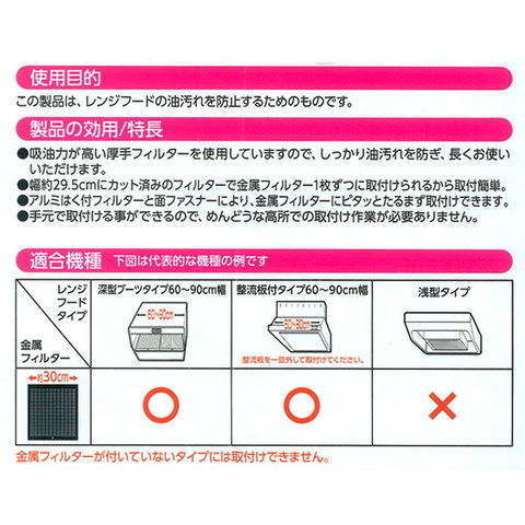 吸油力が高い厚手フィルターを使用していますので、しっかり油汚れを防ぎ、長くお使いいただけます。