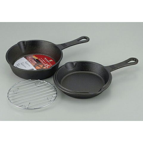 スキレット IH対応 へビーズ 鉄スキレットコンボセット 15cm HR-7967 | 鉄鍋 IH 鉄 フライパン 網付き キャンプ アウトドア 鉄製 燻製用アミ