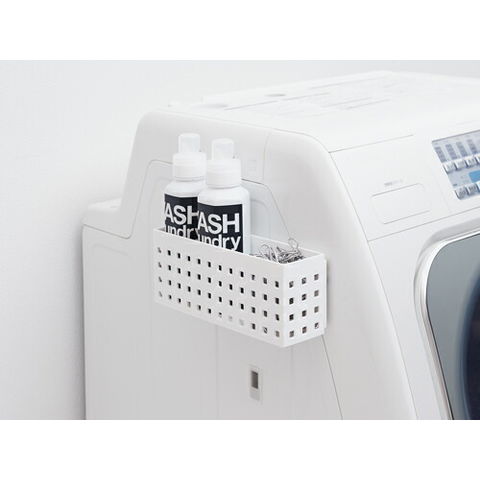 洗濯機サイドでは、洗濯バサミや部分用洗剤などの収納に。