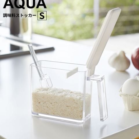 山崎実業 アクア 調味料ストッカー S ホワイト 2886 | 調味料入れ ポット 砂糖 塩 ケース 容器 小さじ スプーン付き すり切り 片手 開閉 シール付き