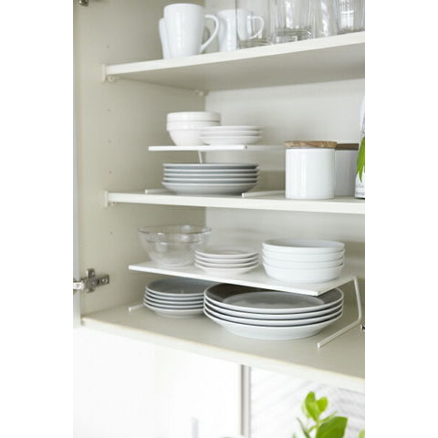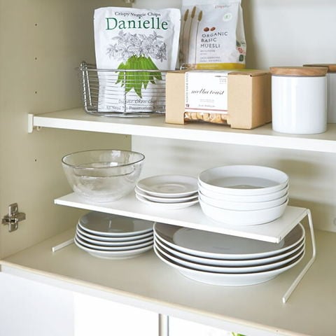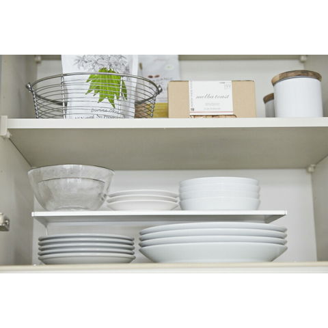 食器棚の1段を賢く2段にできるディッシュストレージ。