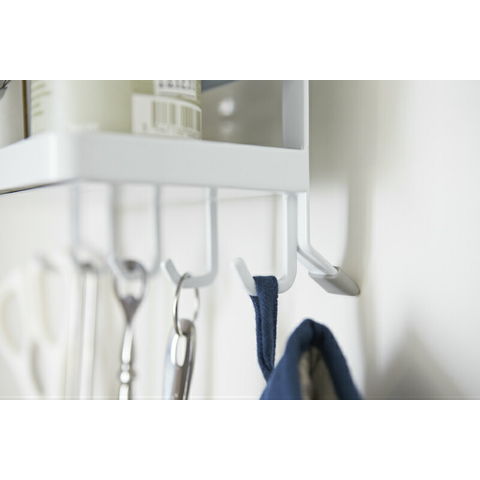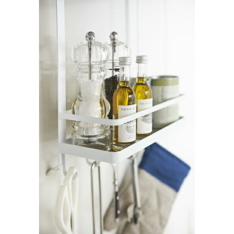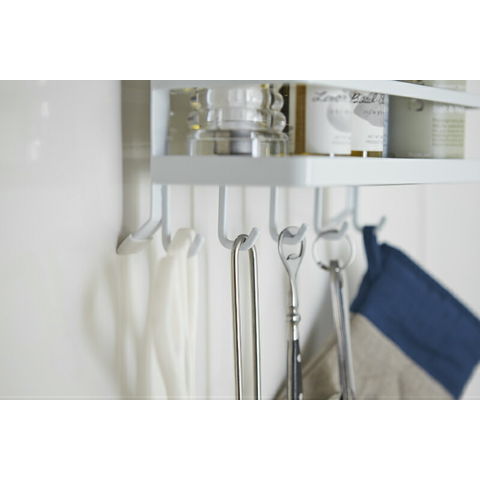 山崎実業 プレート レンジフード調味料ラック ホワイト 3128 | レンジフードラック 調味料トレー 調理器具 フック