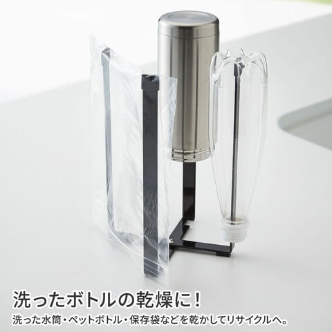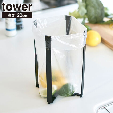 山崎実業 tower タワー ポリ袋エコホルダー L 高さ 22cm ブラック 3181 | キッチン 簡易ゴミ箱 三角コーナー 生ごみ入れ ミニゴミ箱 牛乳パック コップ ボトル 乾かす 折りたたみ シンプル 便利