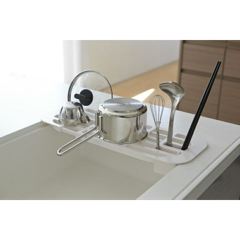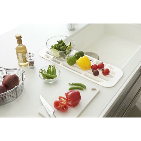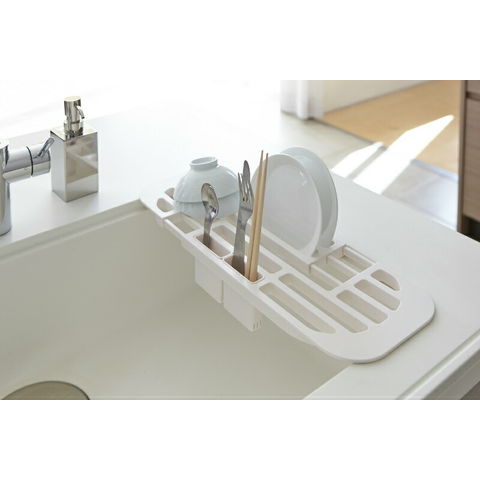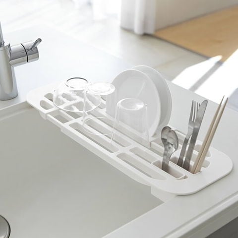山崎実業 tower タワー 伸縮水切りラック ホワイト 2873 | 水切りトレー 食器 洗い シンク