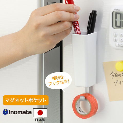 小物入れ マグネットポケット ホワイト 5090 | マグネット キッチン 日本製 磁石 冷蔵庫 収納 デスク 玄関ドア ペン立て 小物整理 クリップ