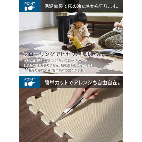 ジョイント式ジョイント式なので、場所や用途に合わせて使い方は自由自在。リビングや子供部屋はもちろん、水に強い素材なので、洗面所やキッチンなどにもお使い頂けます。