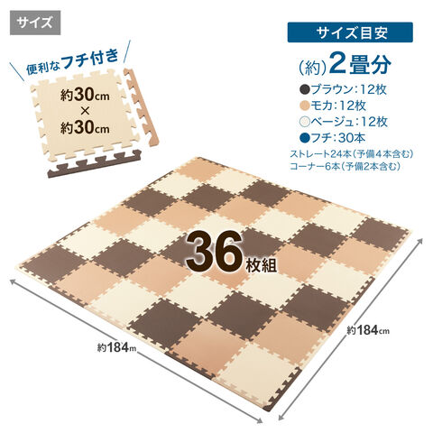 ジョイントマット 32cm 36枚組 フチ付 (2畳分) | プレイマット ベビーマット 防音 PE マット ジョイント つなげる キッズ ペット フロアマット クッション ふち付 フレーム付き カットできる 敷き詰め 衝撃吸収 床 保護 ブラウン系 暖色系