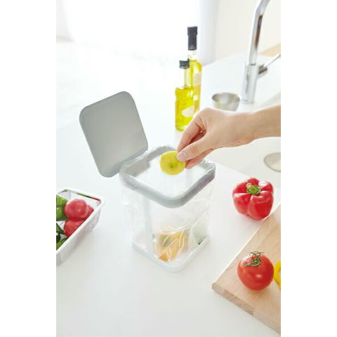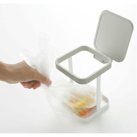 山崎実業 三角コーナー プレート 蓋付き ポリ袋エコホルダー ホワイト 3353 | ポリ袋ホルダー 折りたたみ ごみ箱 三角ポット フタ付 フタあり