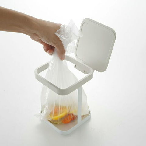 スーパーなどのポリ袋を掛けると簡易型ゴミ箱に。調理中に出る野菜クズや資源ゴミを、手軽に捨てることができます。