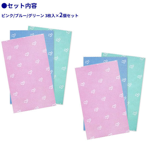 3枚入(ピンク・ブルー・グリーン各1枚)×2個セット