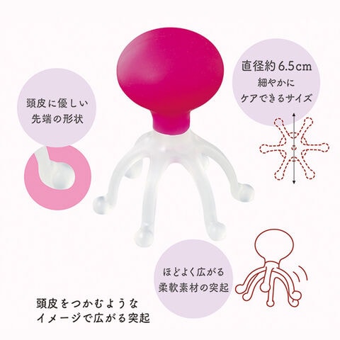 つかむように広がる突起が頭皮を揉み上げて、心地よく刺激する頭皮ケアグッズ。