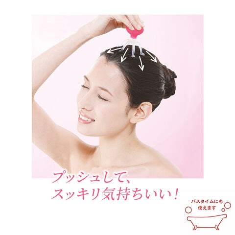 プッシュ機能で頭皮を揉み上げ、心地よく刺激します。