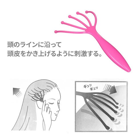 頭のラインに沿って頭皮をかき上げるように刺激して、血行を良くする頭皮ケアグッズ。
