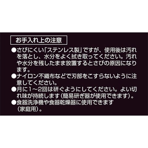 | 材質 | 刃体/ハイカーボンステンレス刃物鋼 柄/18-8ステンレススチール |