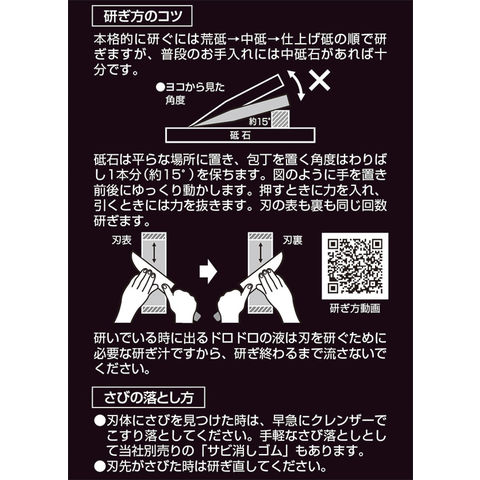 月に1~2回は研ぐようにしてください。よい切れ味が持続します。(簡易研ぎ器が使用できます)