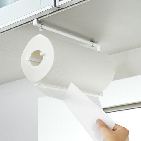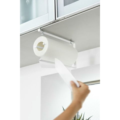 山崎実業 キッチンペーパーホルダー プレート 片手でカット戸棚下キッチンペーパーホルダー L ホワイト 3298 | キッチンペーパー収納 戸棚下 吊り戸棚 デッドスペース