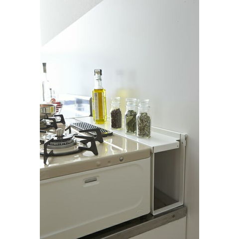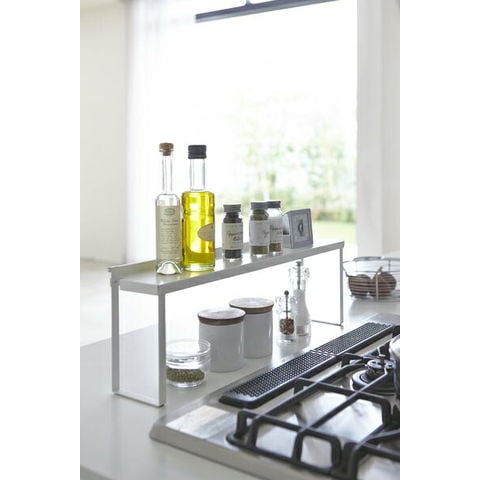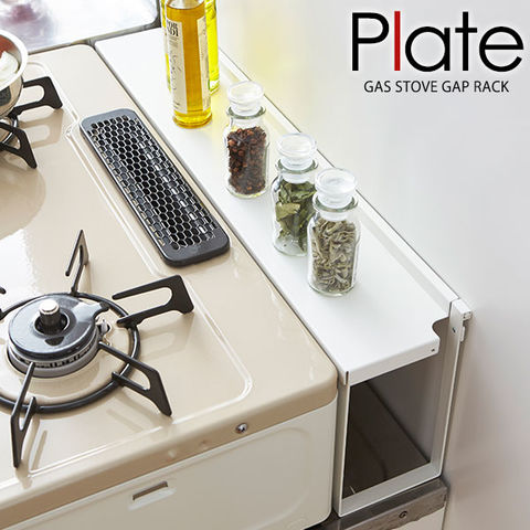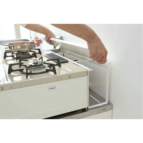 山崎実業 プレート コンロ奥隙間ラック ホワイト 3487 | ガスコンロ 奥 後ろ 油はね ラック 棚 カバー 収納 ガード おしゃれ 調味料ラック