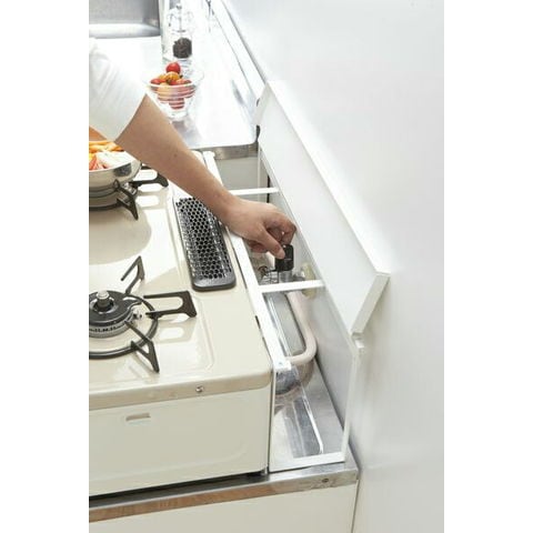 ガスコンロ奥の隙間を便利な収納スペースにできるラック。