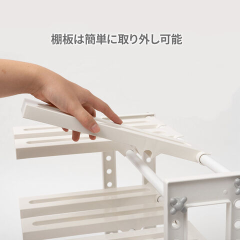 材質:フレーム/PS 棚板・メネジ/PP パイプ/スチール(PPコーティング)、ABS樹脂